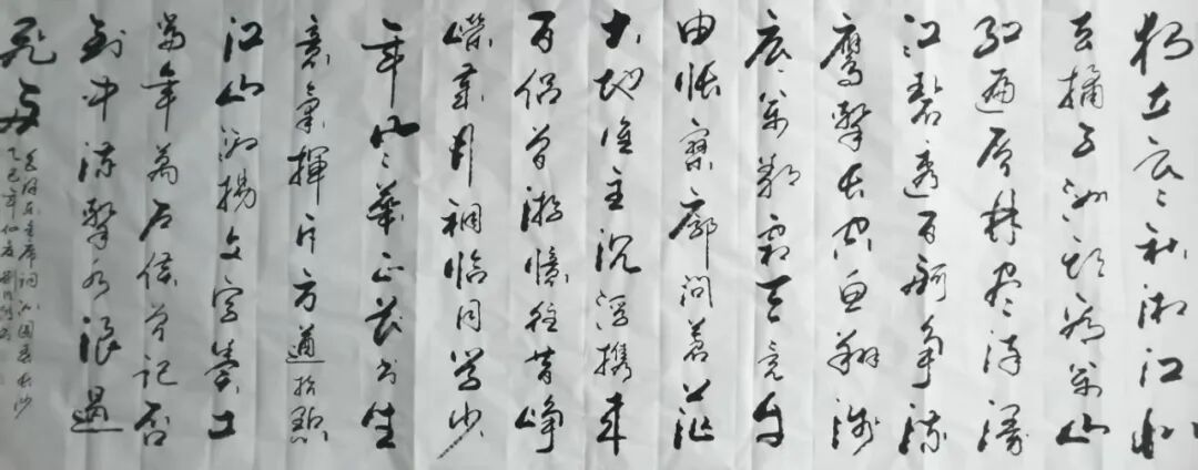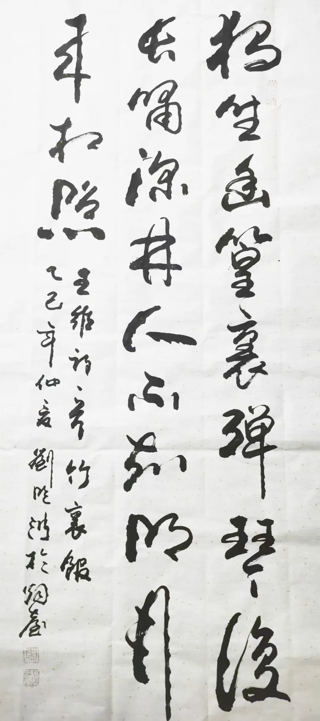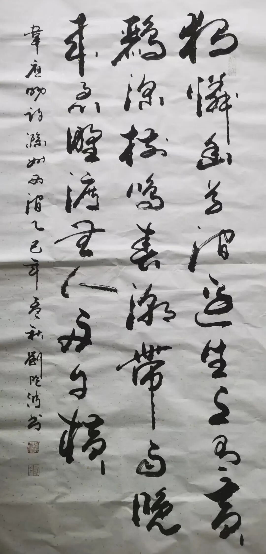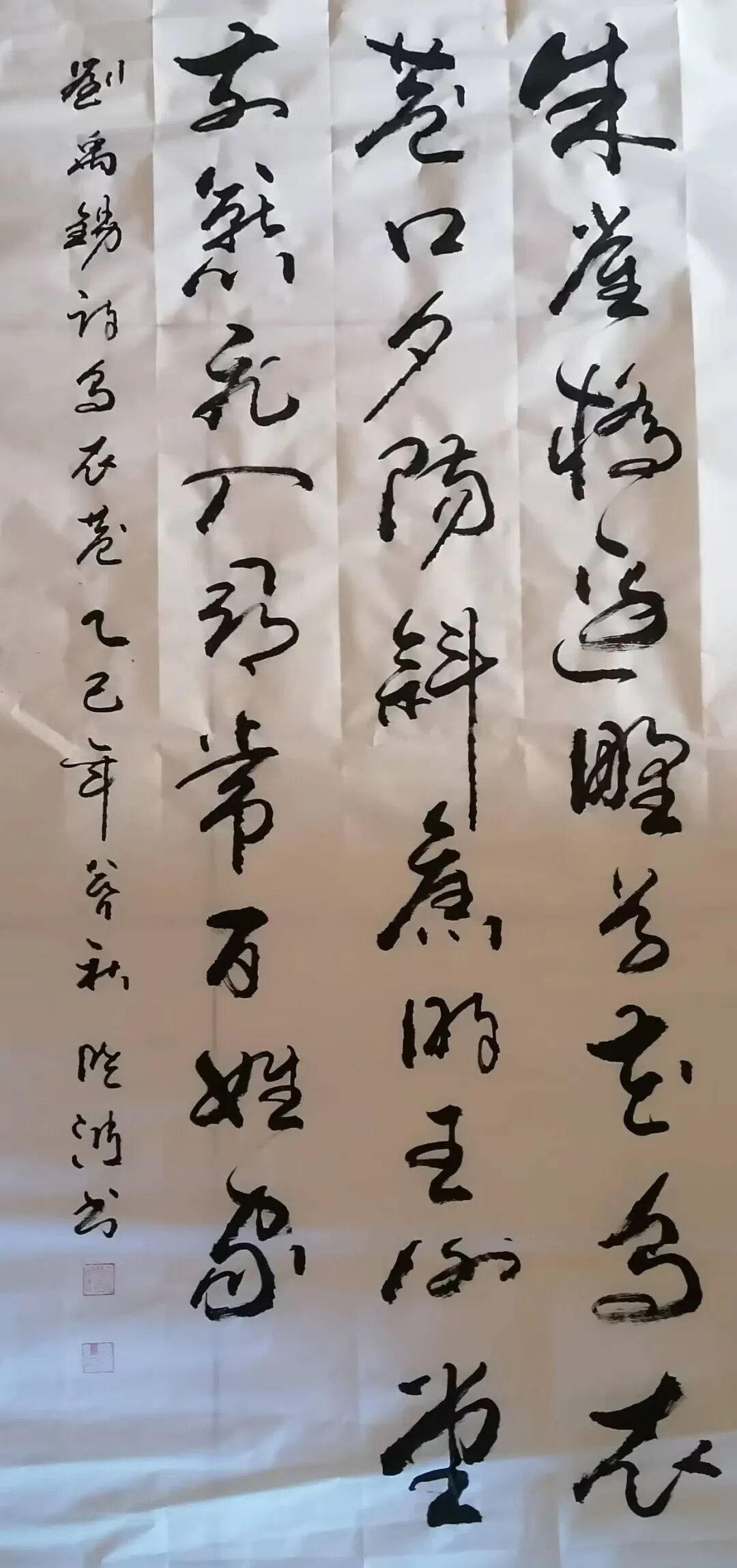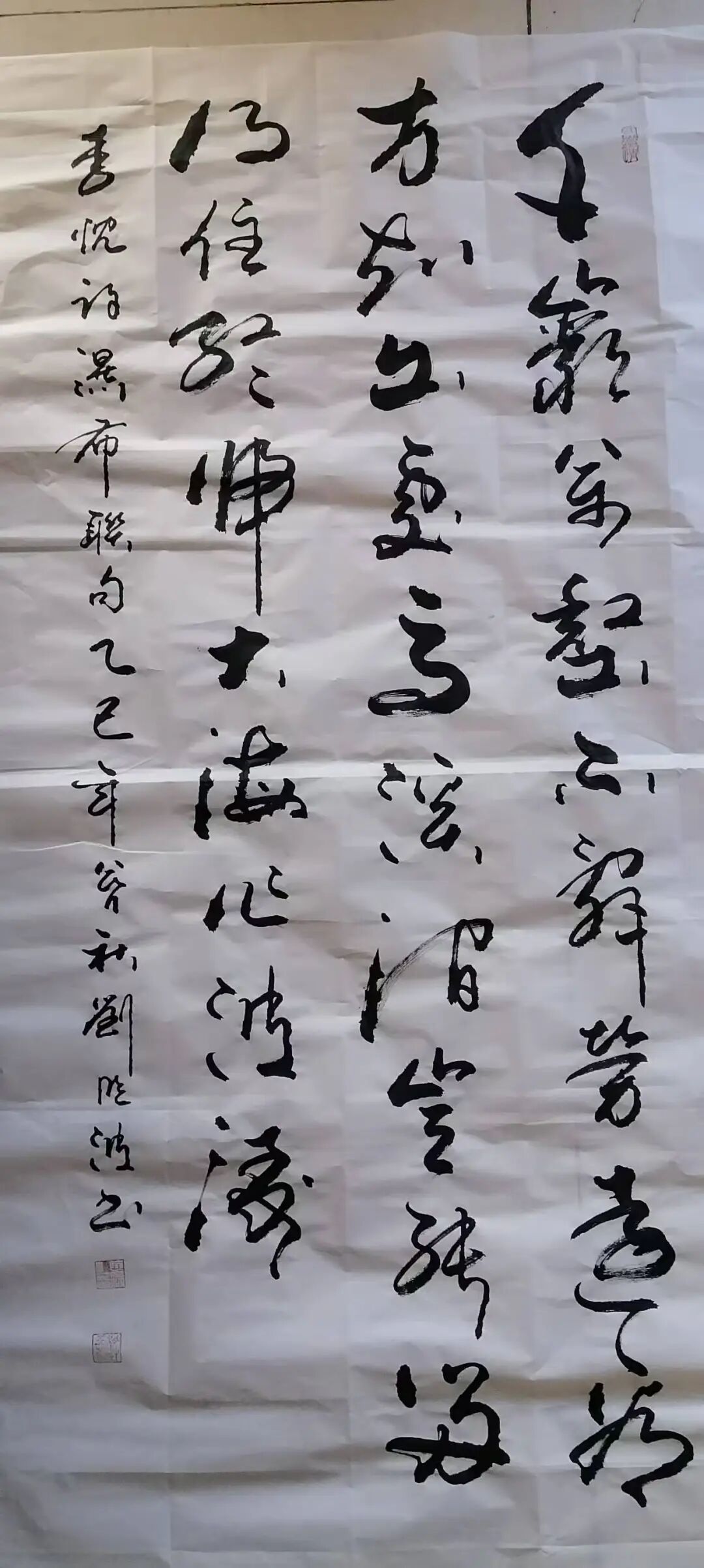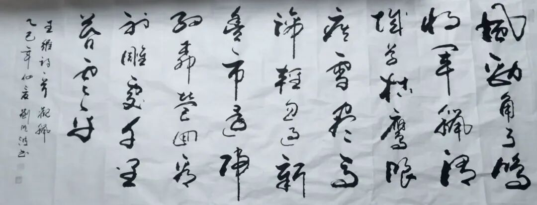 近年来经过不懈的临帖与努力,书法风格,逐步转向以行草为主。看现在的作品,雄逸潇洒,气韵流畅,富有变化而不失法度。寓情趣于微妙变化之中。以(既知险绝,复归平正)的古训统摄他的笔墨和艺术走向。