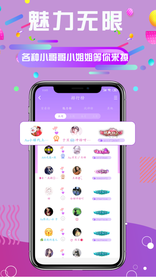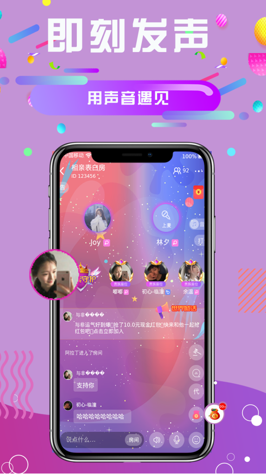 久久语音,是一款可以"玩”的社交应用软件,可以基于语音聊天室来实现轻松交友。在久久语音这款软件里,有家族、技能以及游戏等各种玩法,家族可以赋予用户属性,技能可以增强用户追求,游戏可以让人与人之间提高互动,从而能够让陌生人之间的弱关系转化为强关系,人与人之间的关系更加紧密。